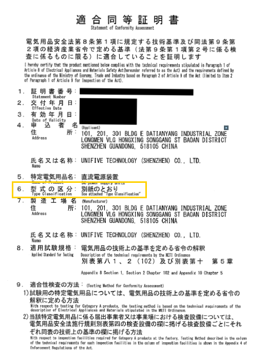 당사에서는 PSE에서 정한 기술 기준에 적합한 제품을 제공하고 있으며, 그 정해진 기술 기준에 적합함을 증명하는 서류로서 "적합동등증명서"를 발급받고 있습니다.