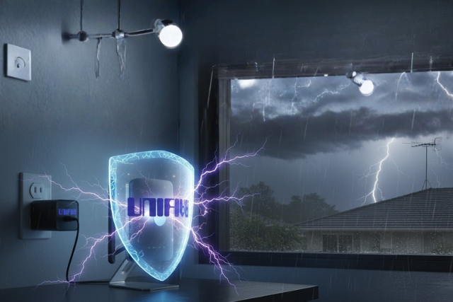 標準ACアダプターではサージ耐性が不足し、落雷時の機器故障リスクが高い